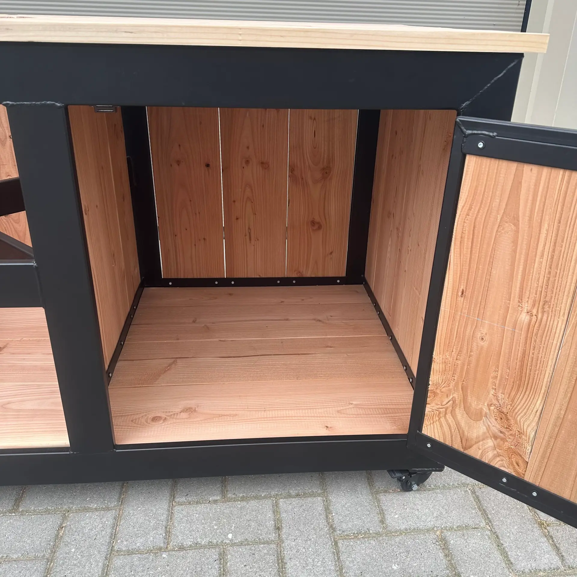 Buitenkeuken met stalen frame en Douglashout