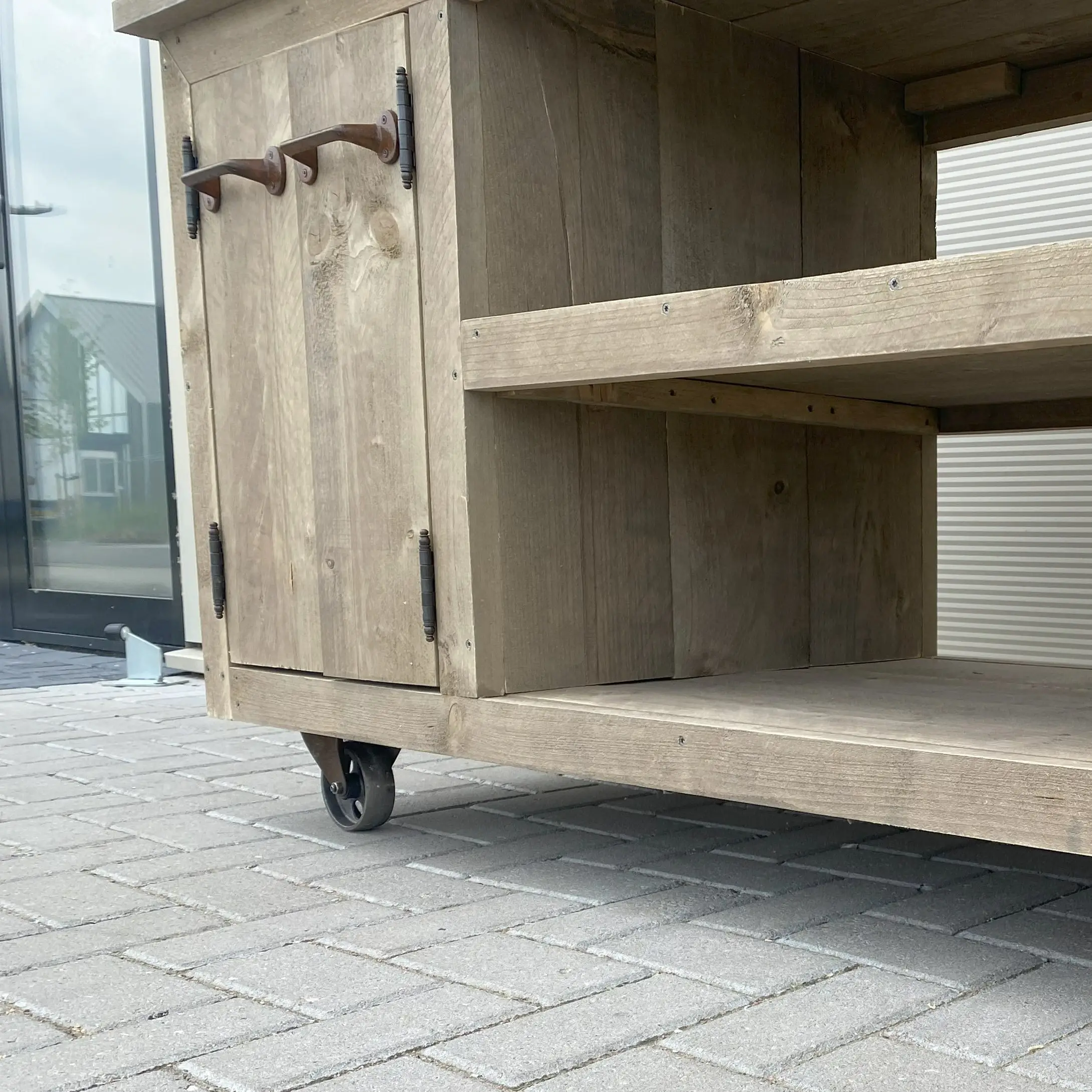 - Eenvoudig Verplaatsbaar: Dankzij de zwenkwielen, waarvan twee met rem, is de buitenkeuken makkelijk te verplaatsen en veilig vast te zetten.