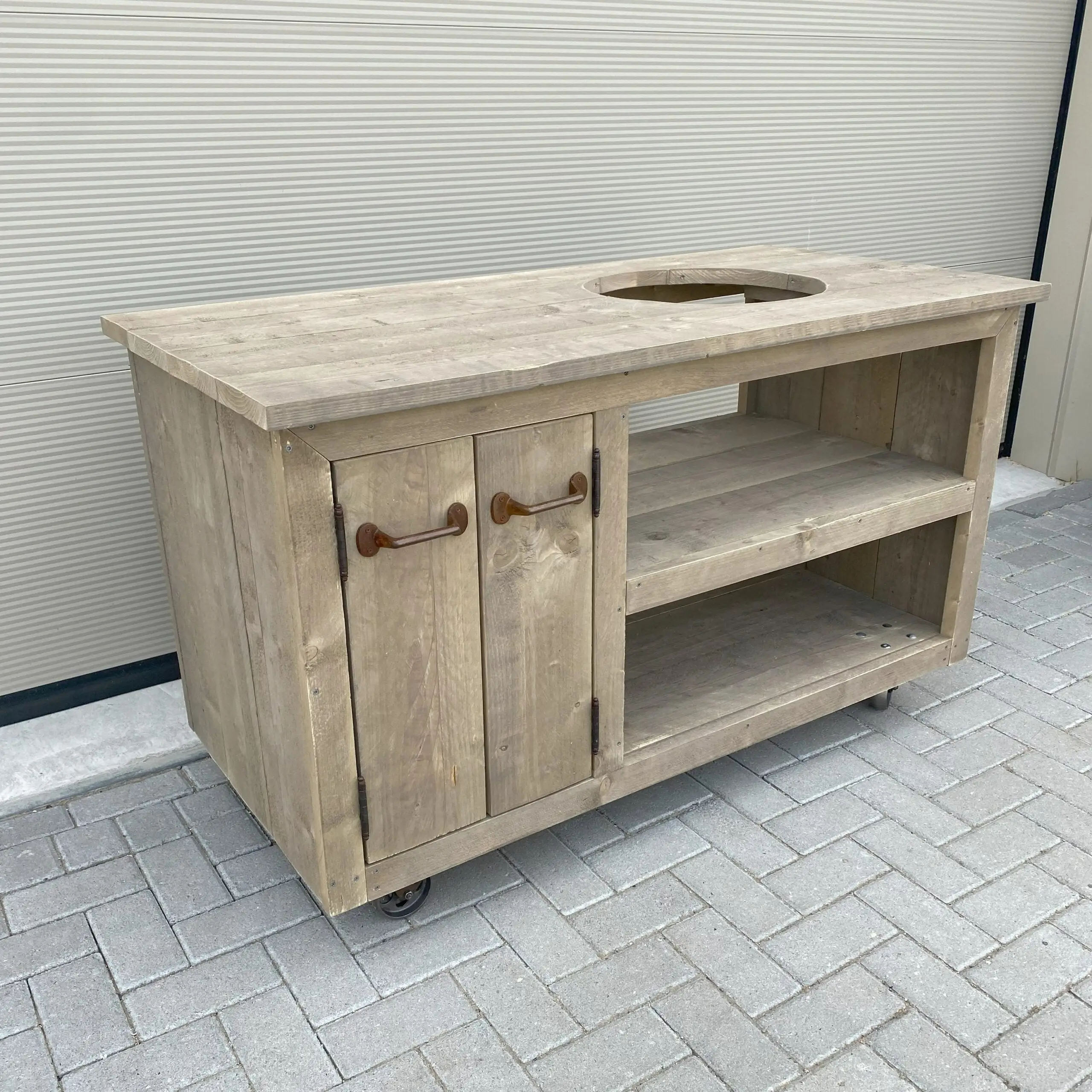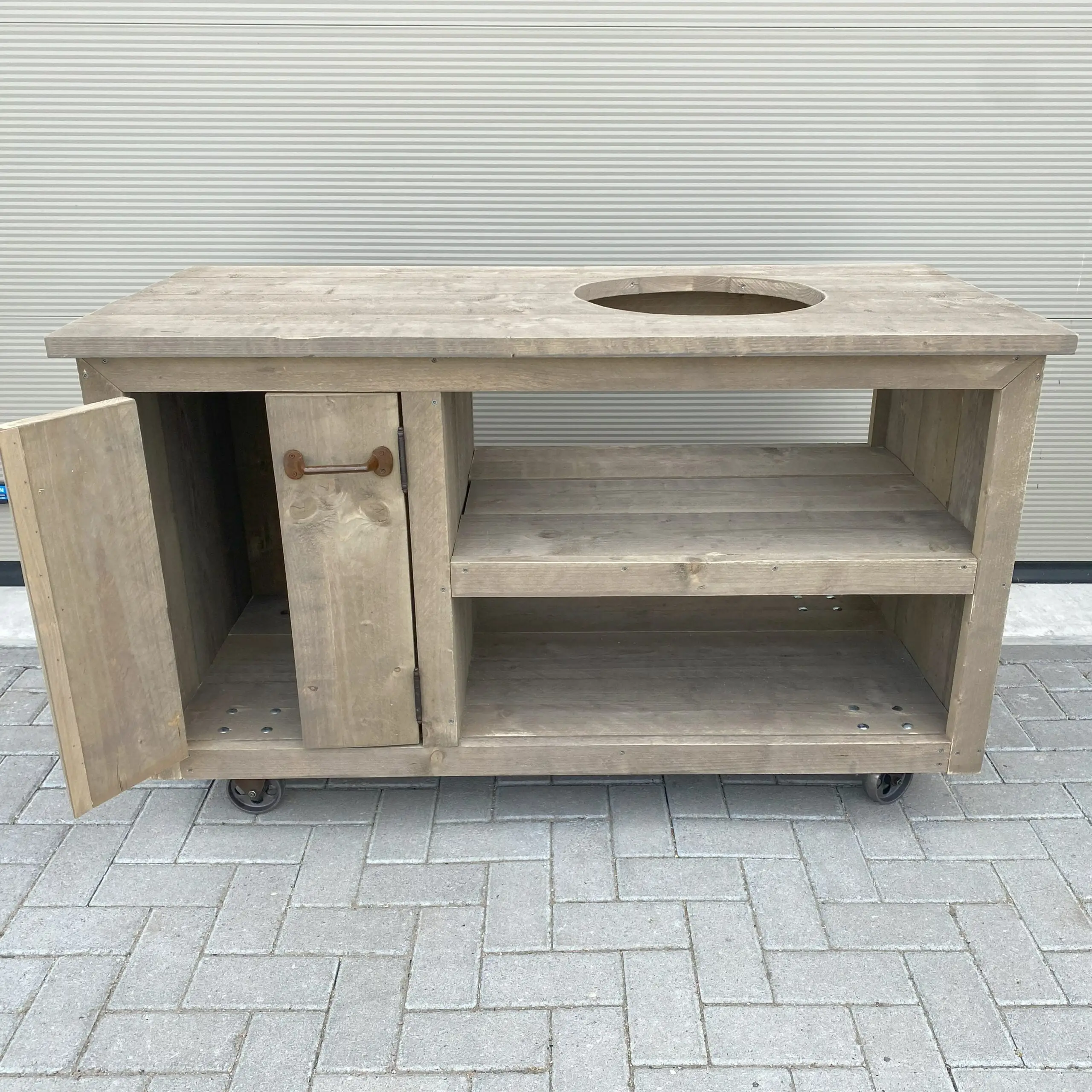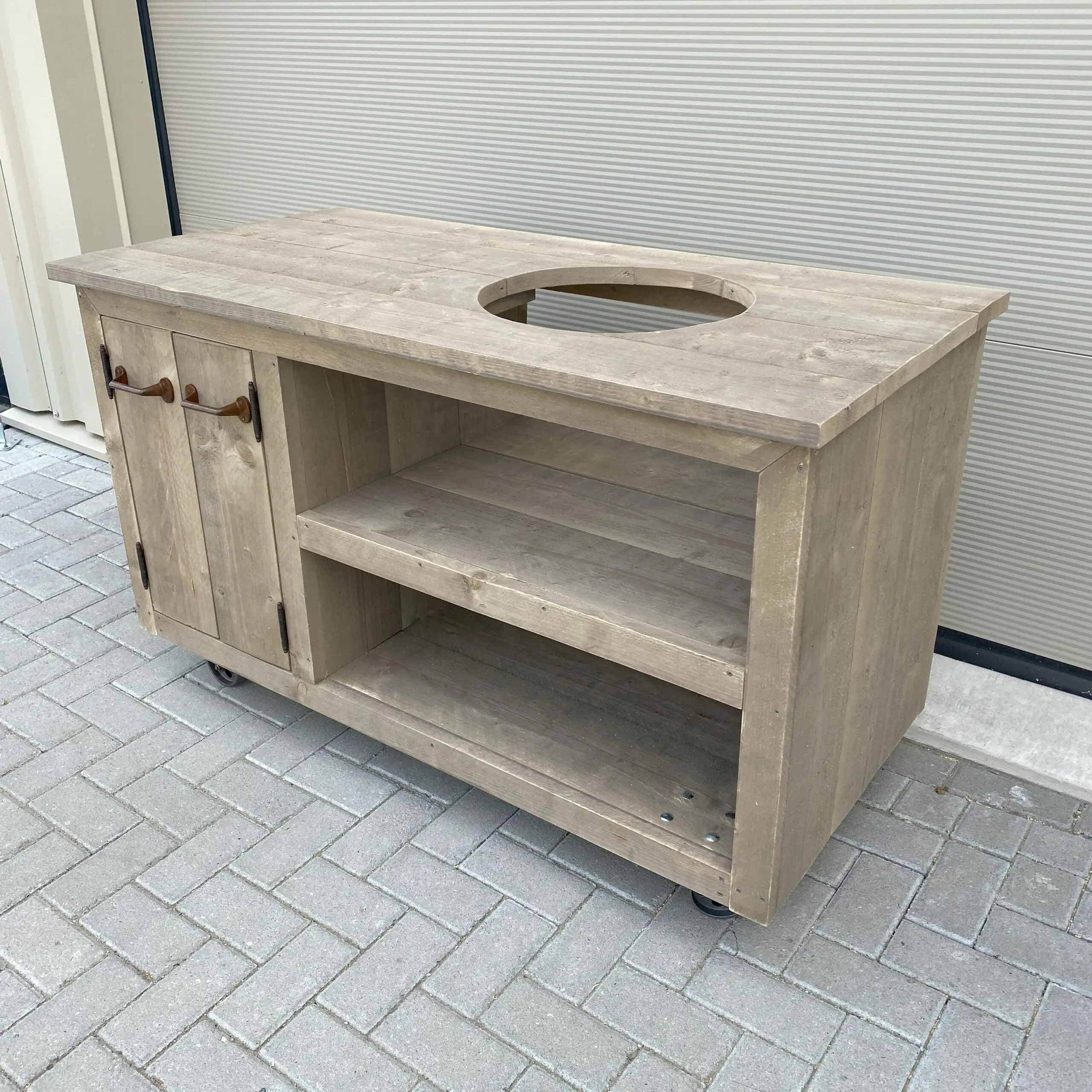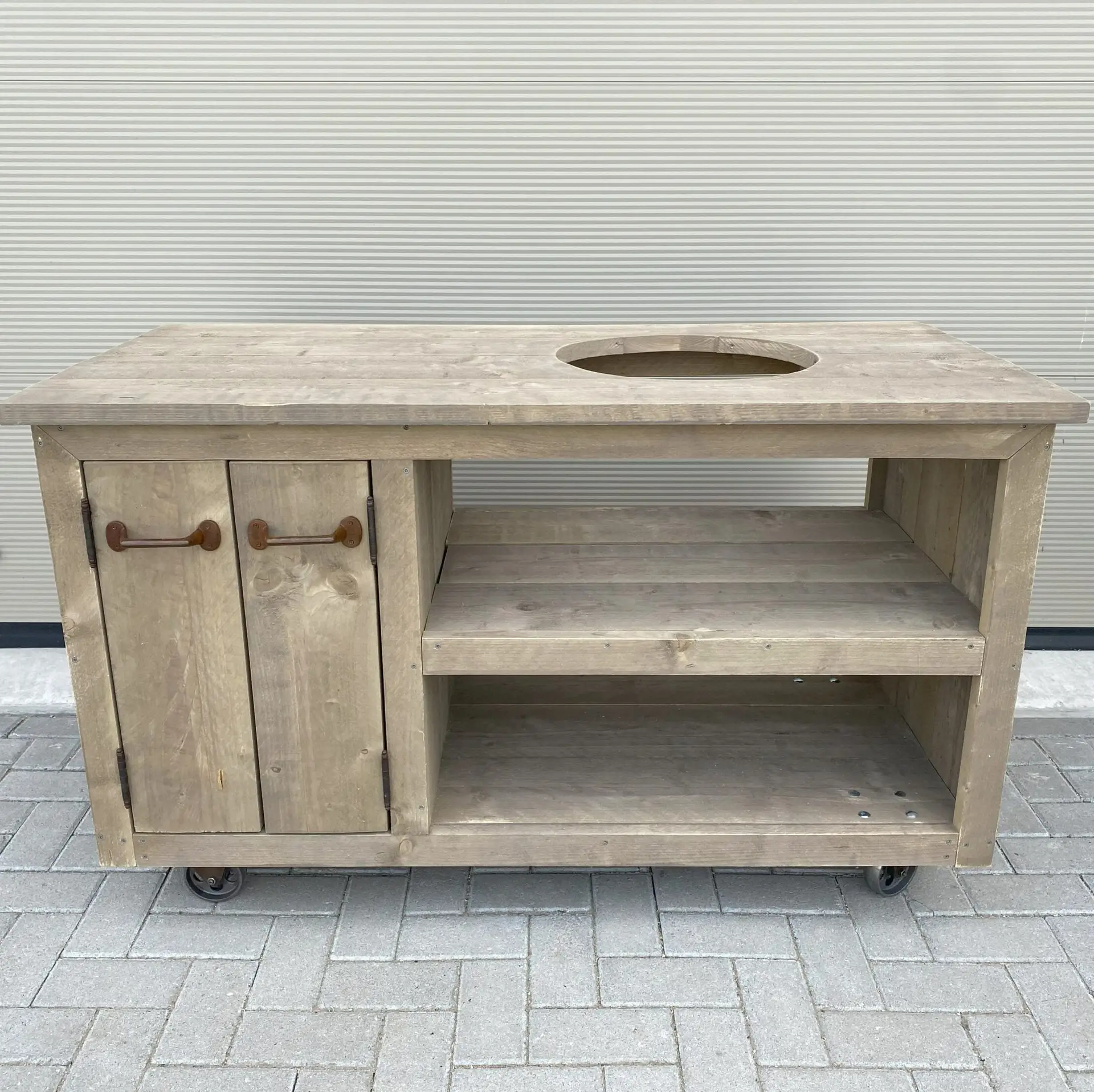 Deze 2-delige buitenkeuken is ontworpen om goed te passen bij verschillende kamado’s, zoals: