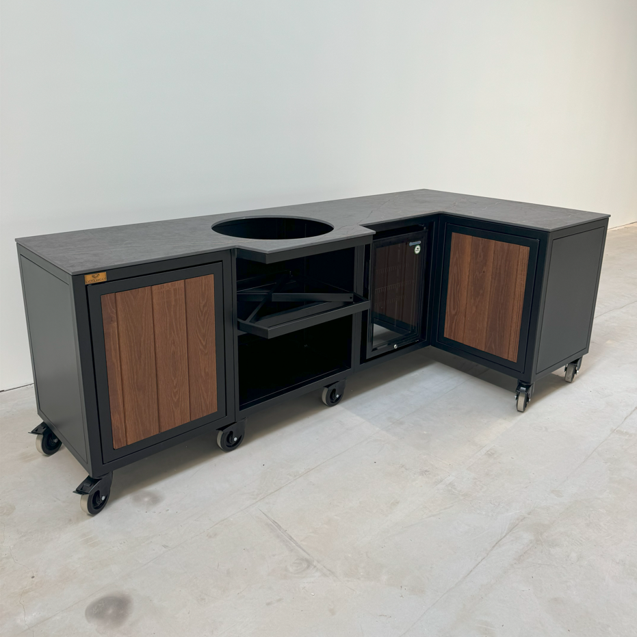 Dankzij het modulaire systeem stel je een buitenkeuken volledig samen naar jouw wensen. Je kiest zelf de opstelling, modules en indeling. Denk aan combinaties met een kamado BBQ, spoelbak, koelkast of extra opbergruimte. Hierdoor ontstaat een buitenkeuken die perfect aansluit op jouw manier van koken en leven buiten.