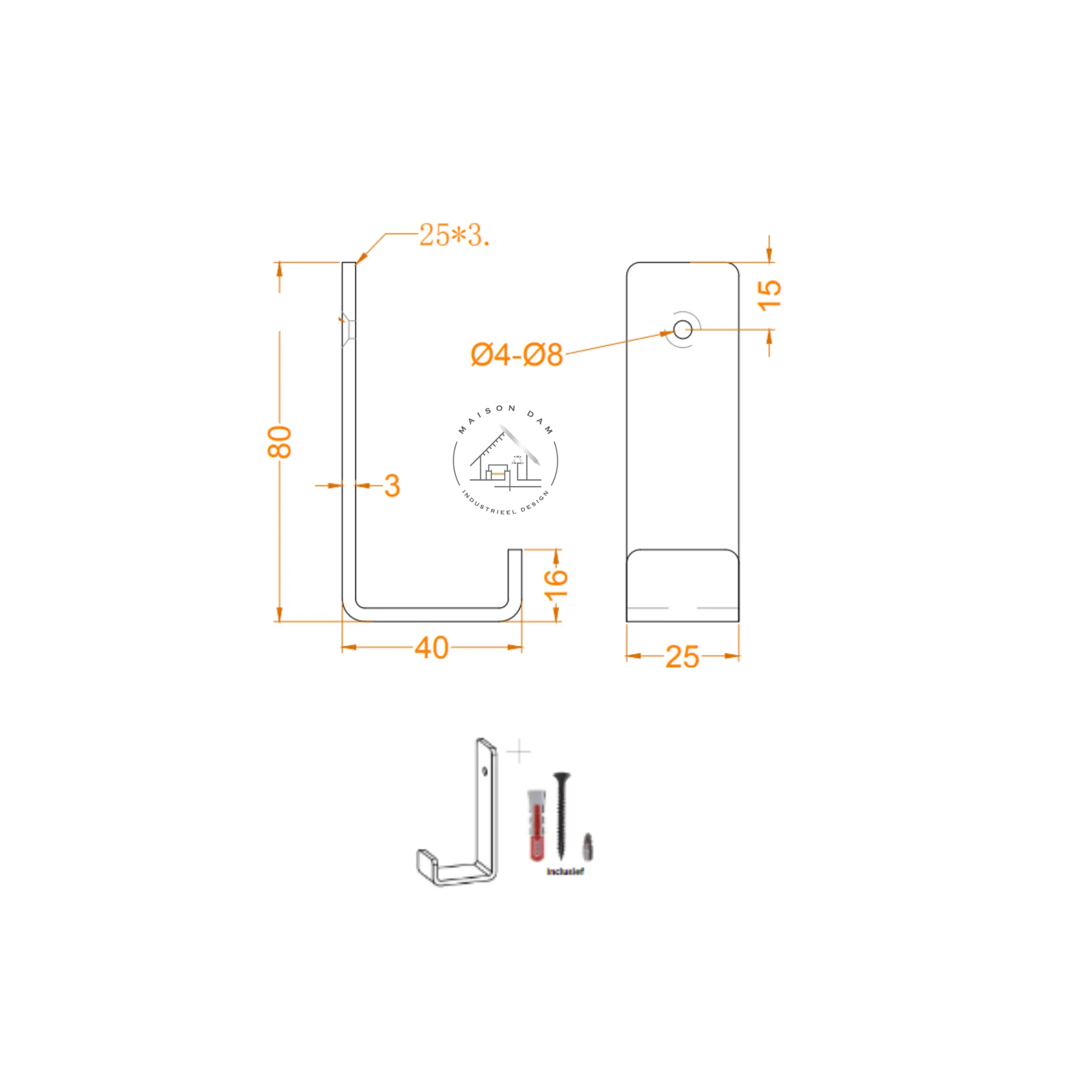 Gemaakt van duurzaam ijzer, wordt deze ophanghaak geleverd met twee schroeven, waardoor je de vrijheid hebt om hem op de meest geschikte manier te monteren. Met een eenvoudige bevestiging met een schroef, transformeer je elke ruimte moeiteloos. Of het nu gaat om het ophangen van jassen in de gang of het presenteren van decoratieve stukken in de woonkamer, deze haak biedt de perfecte oplossing. Ook is de haak te gebruiken aan de achterkant van een plank, waardoor je met meerdere haken een kapstok kan creëren.