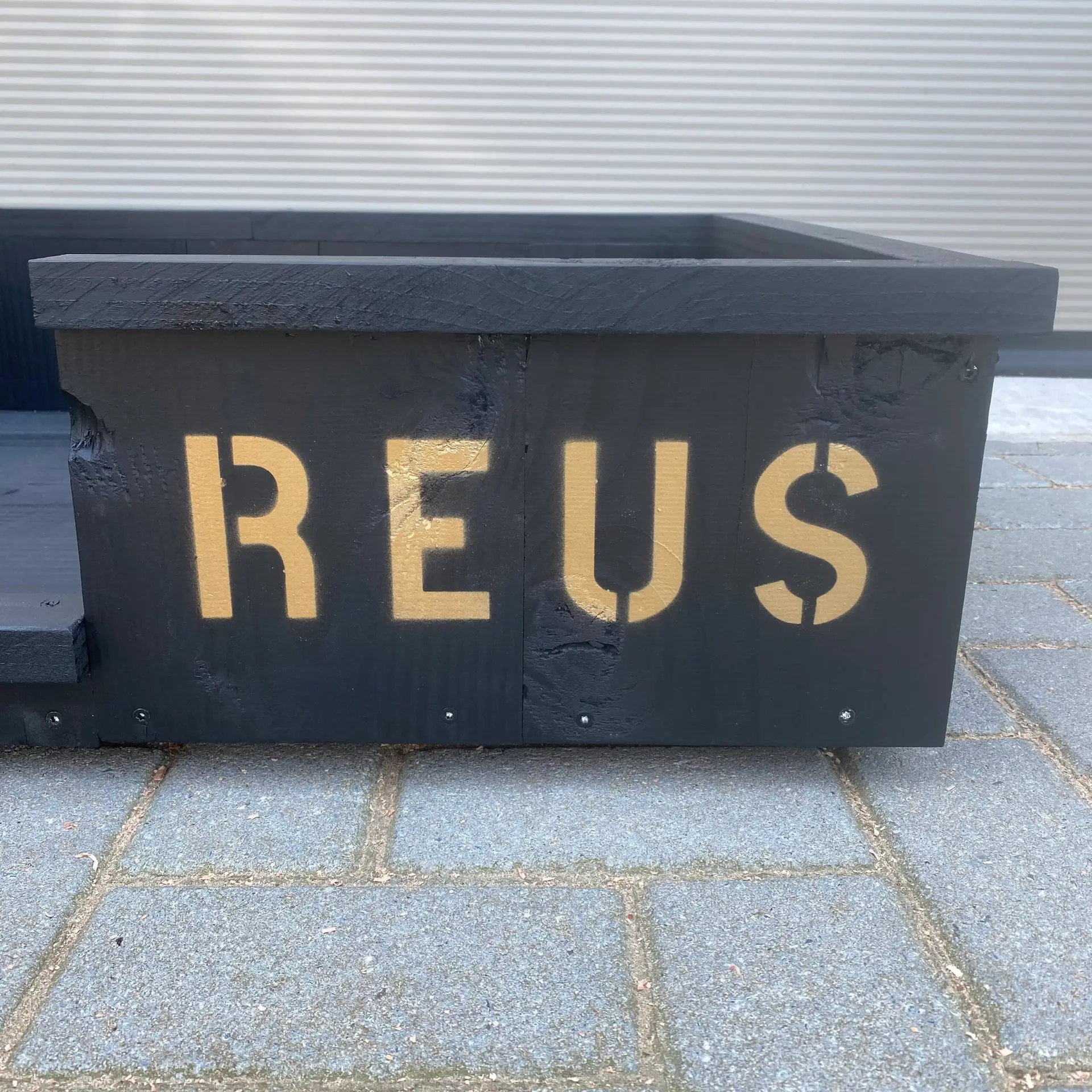 - Voorbeeld: zwart Douglas hout met gouden letters