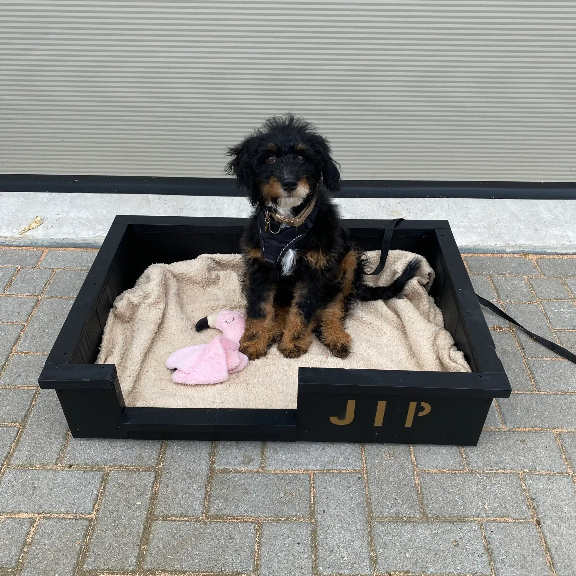 Geef je hond een eigen plek met deze stevige, handgemaakte houten hondenmand van Maison DAM. De mand is verkrijgbaar in steigerhout of Douglas hout, in diverse kleuren, en wordt voorzien van de naam van jouw hond. Zo creëer je een unieke, comfortabele slaapplek die perfect past in je interieur.