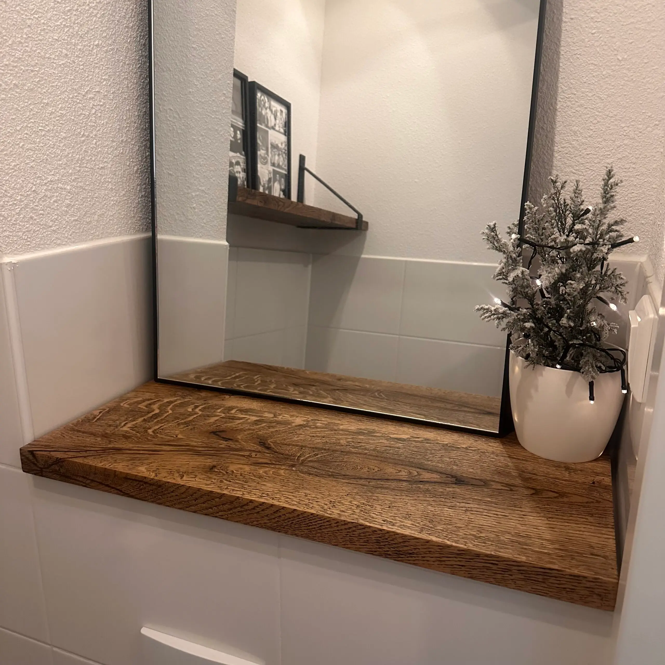 - Afmetingen: Onze toiletplanken kunnen volledig op maat worden gemaakt, met een maximale breedte van 30 cm. Vul je gewenste maat in het formulier in of neem contact met ons op voor advies of een speciaal verzoek.